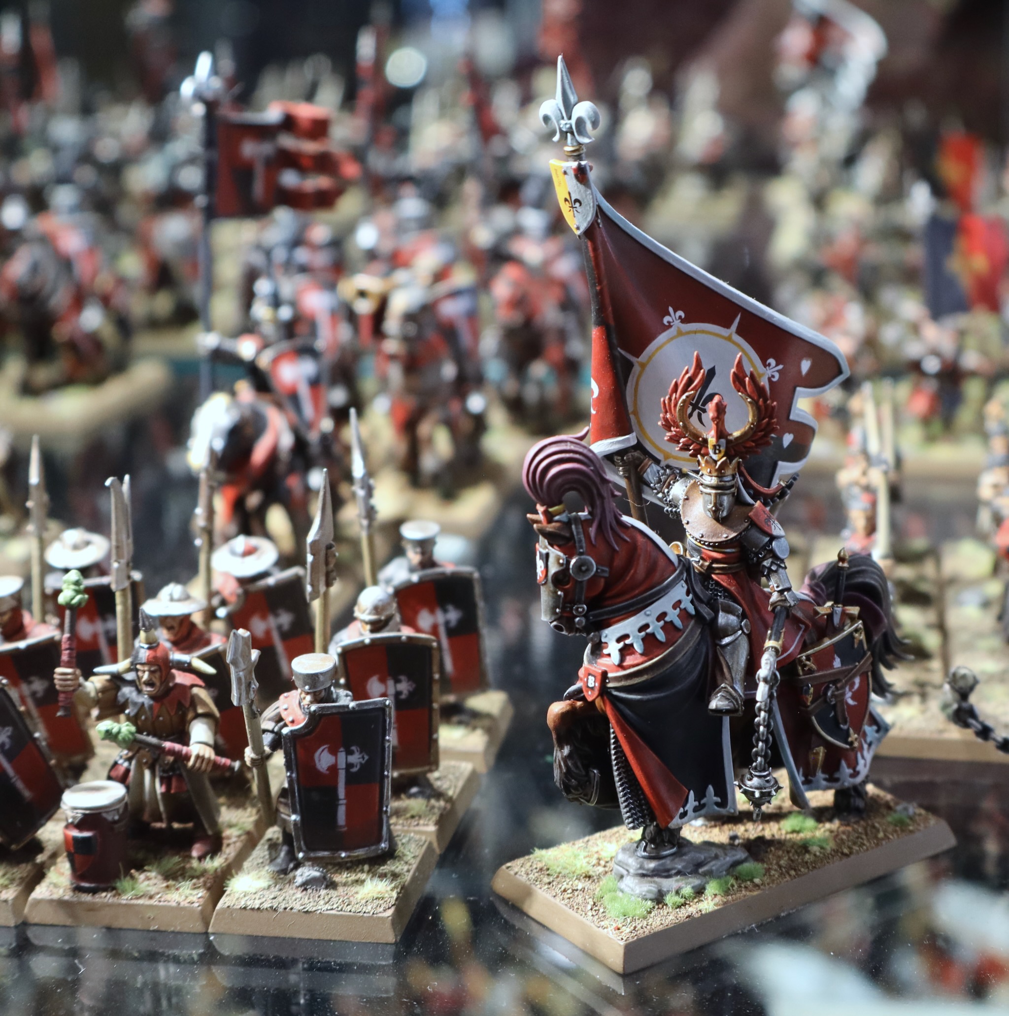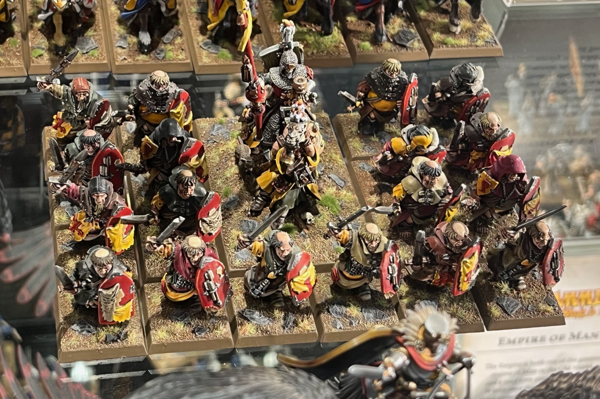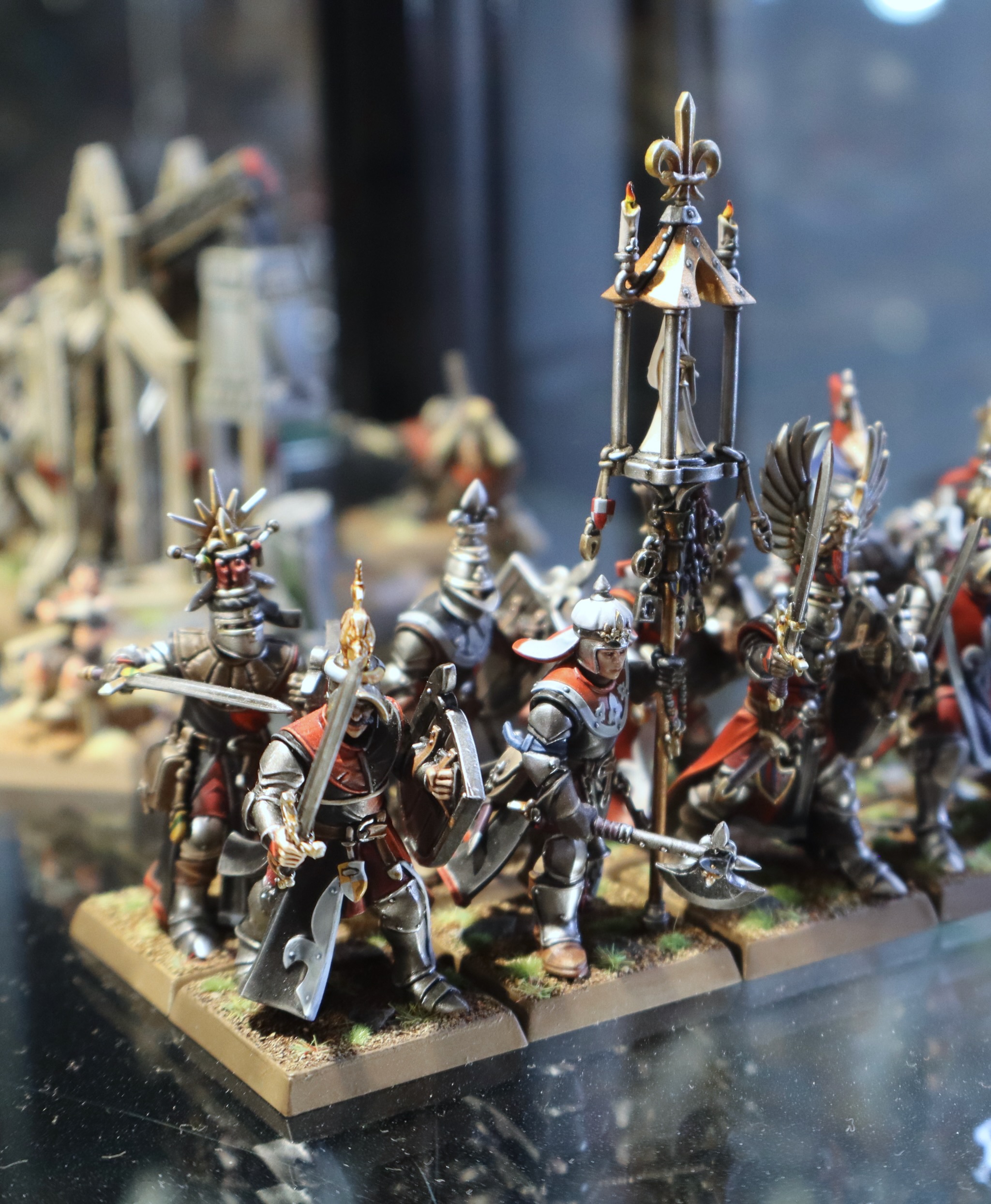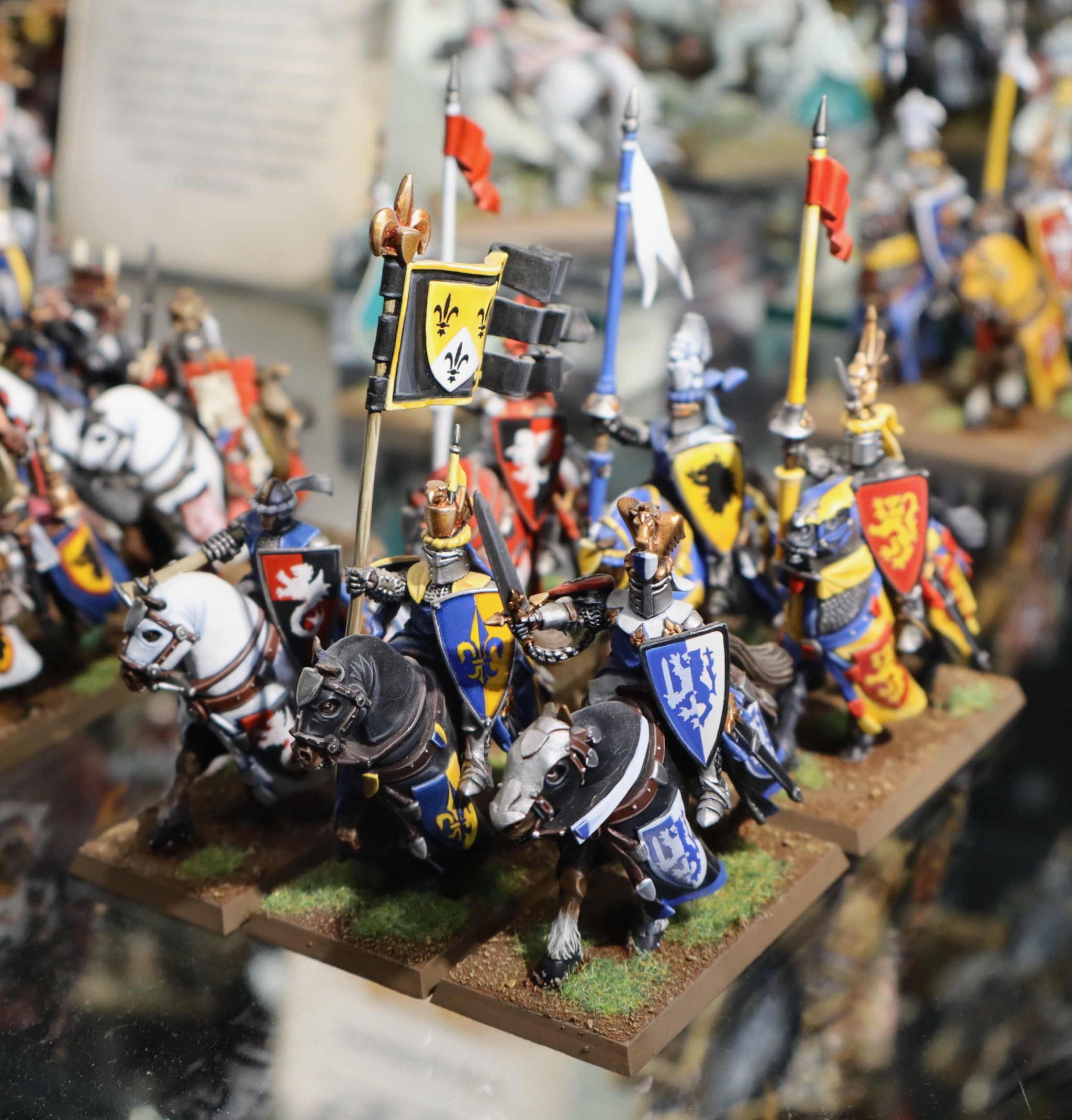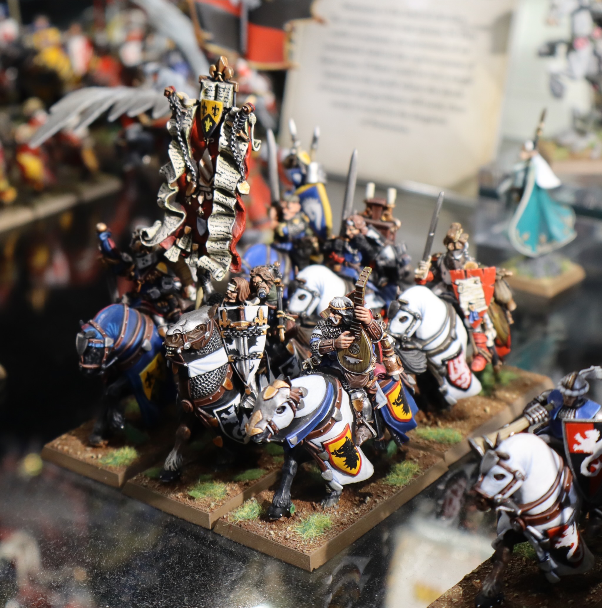 These miniatures from the Bretonnia army in Warhammer: The Old World were on display at Warhammer World.