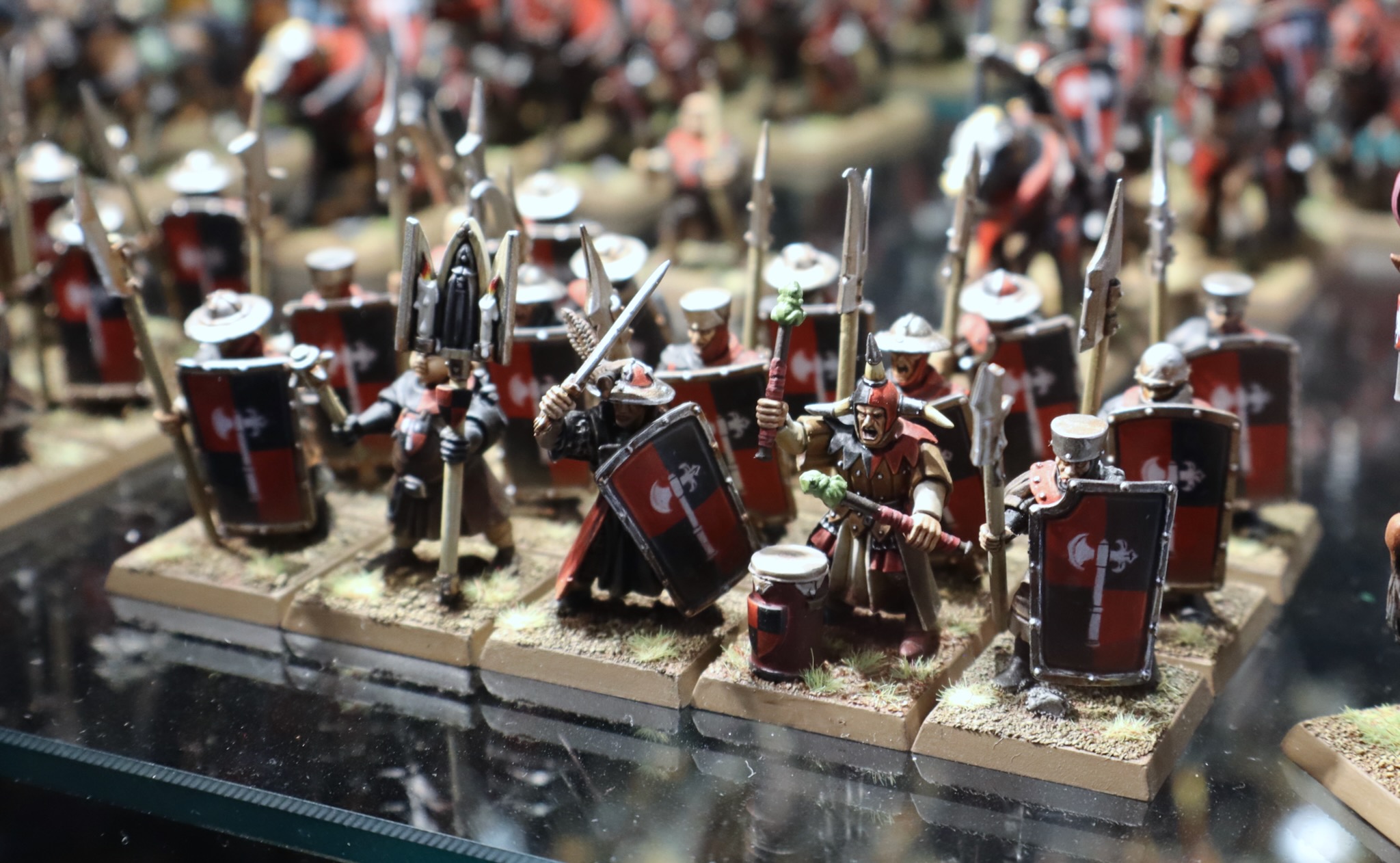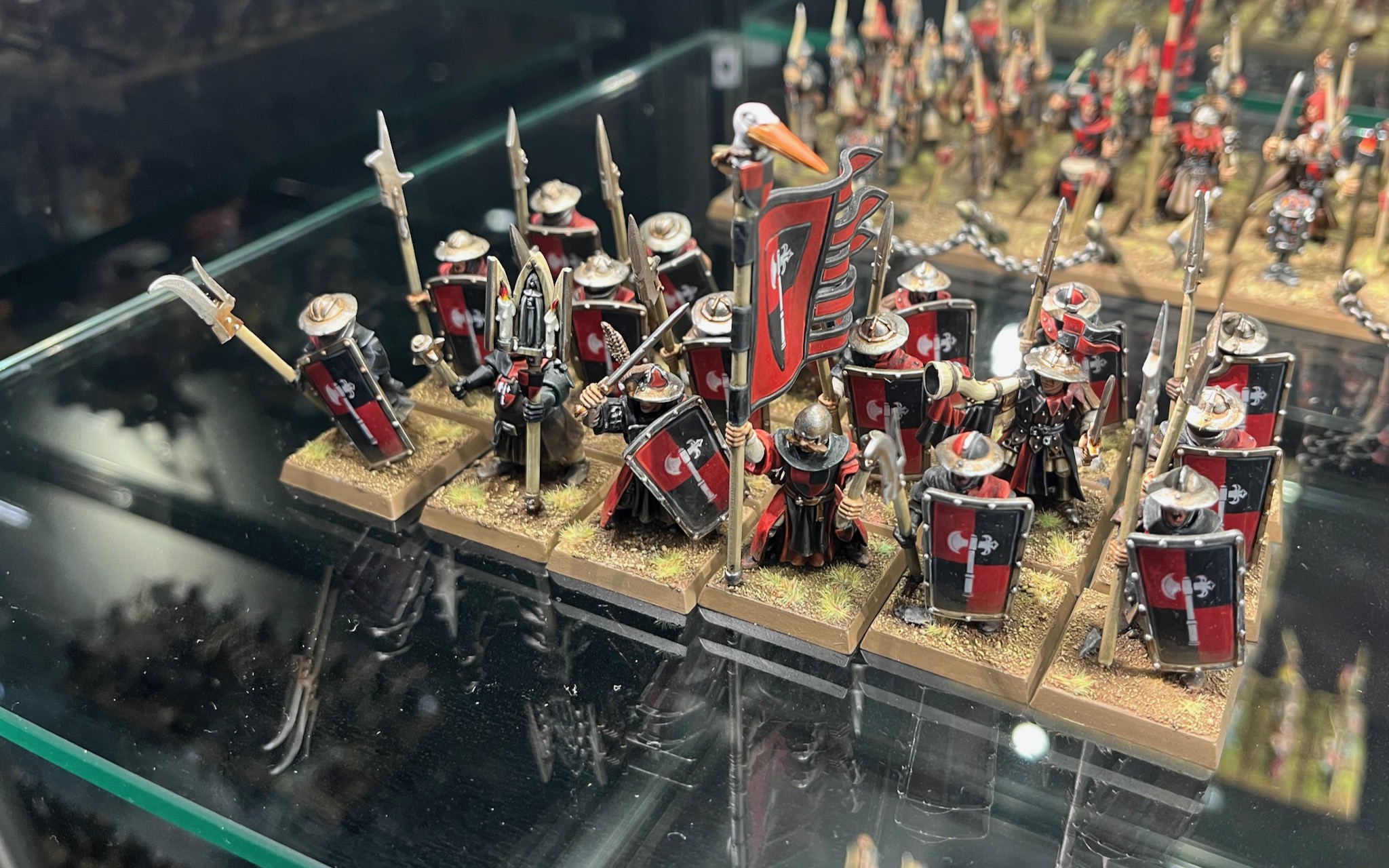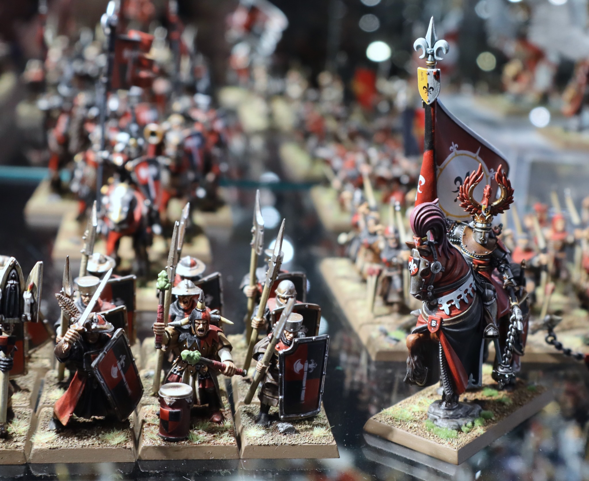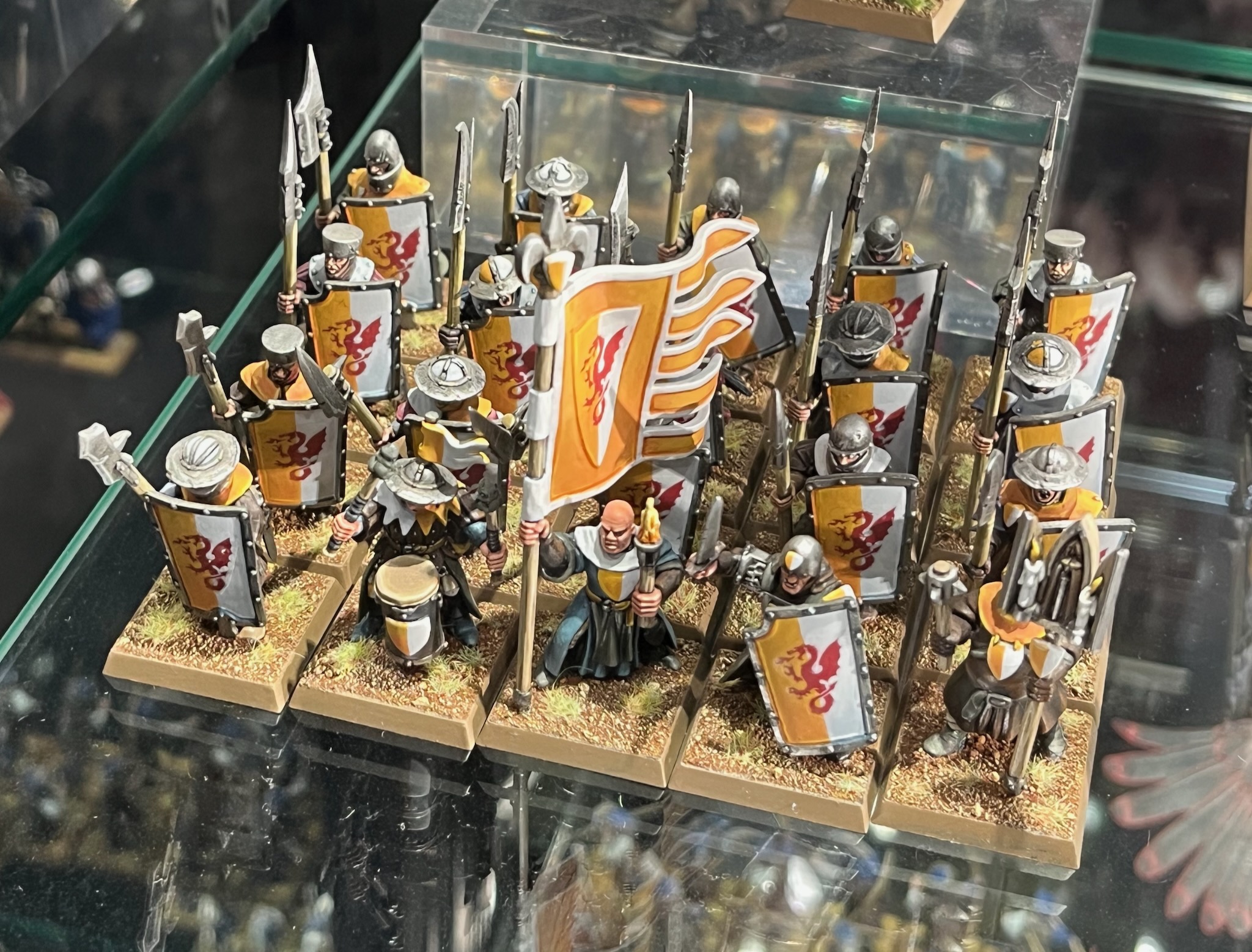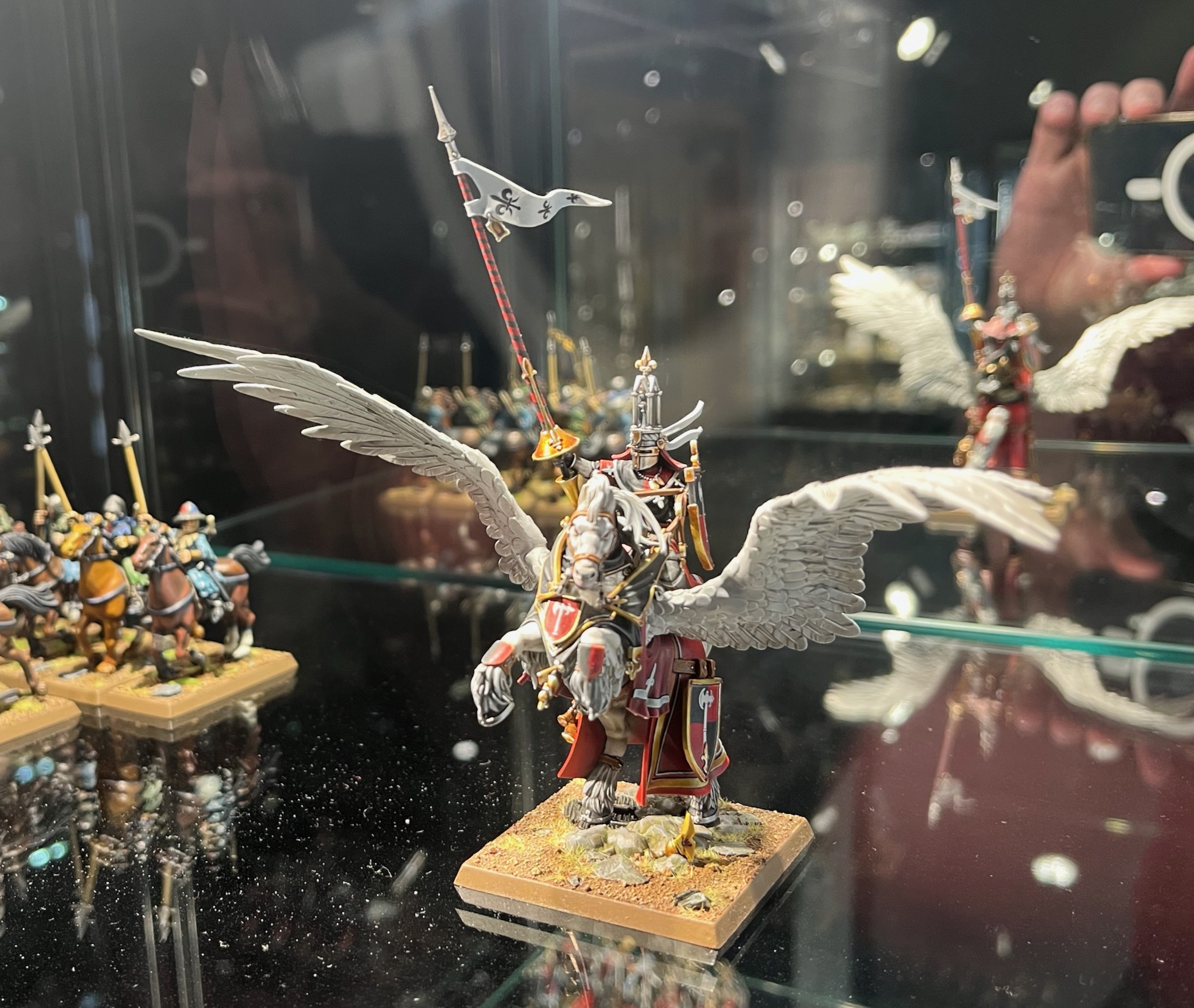 These miniatures from the Bretonnia army in Warhammer: The Old World were on display at Warhammer World.