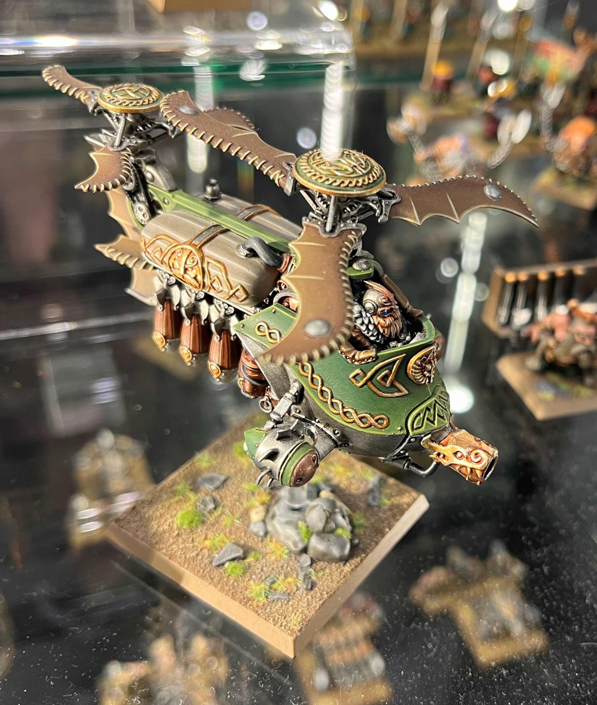 This was the original Dwarf Gyrocopter and personally I think the best. It comes across more as an autogyro rather than a helicopter, whereas the later models do feel more like helicopters, almost too sophisticated for a fantasy setting.