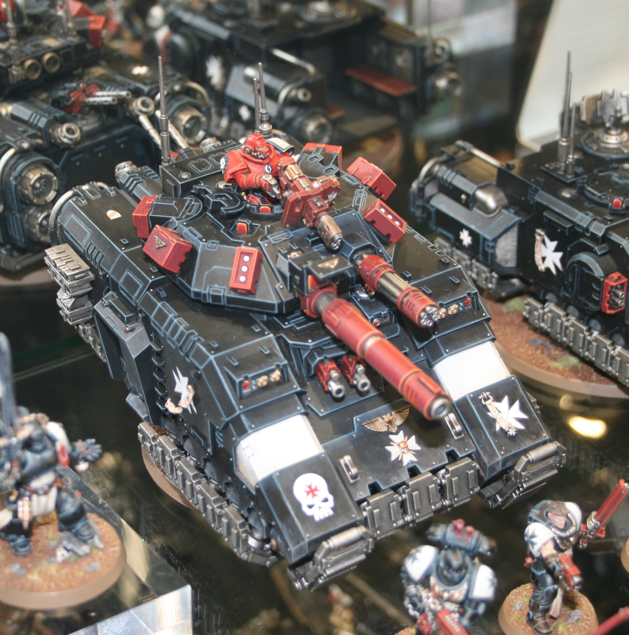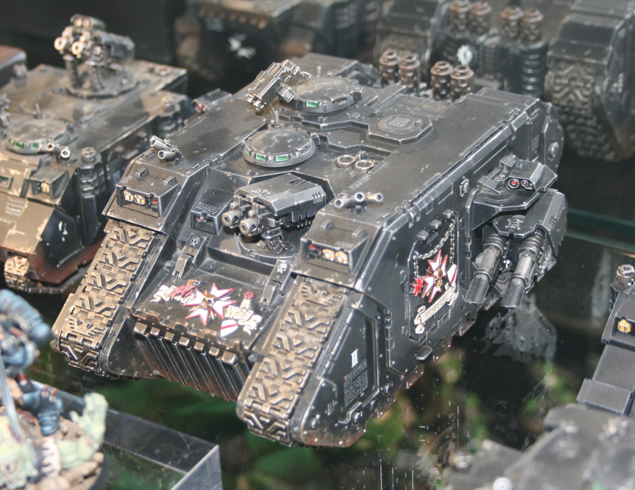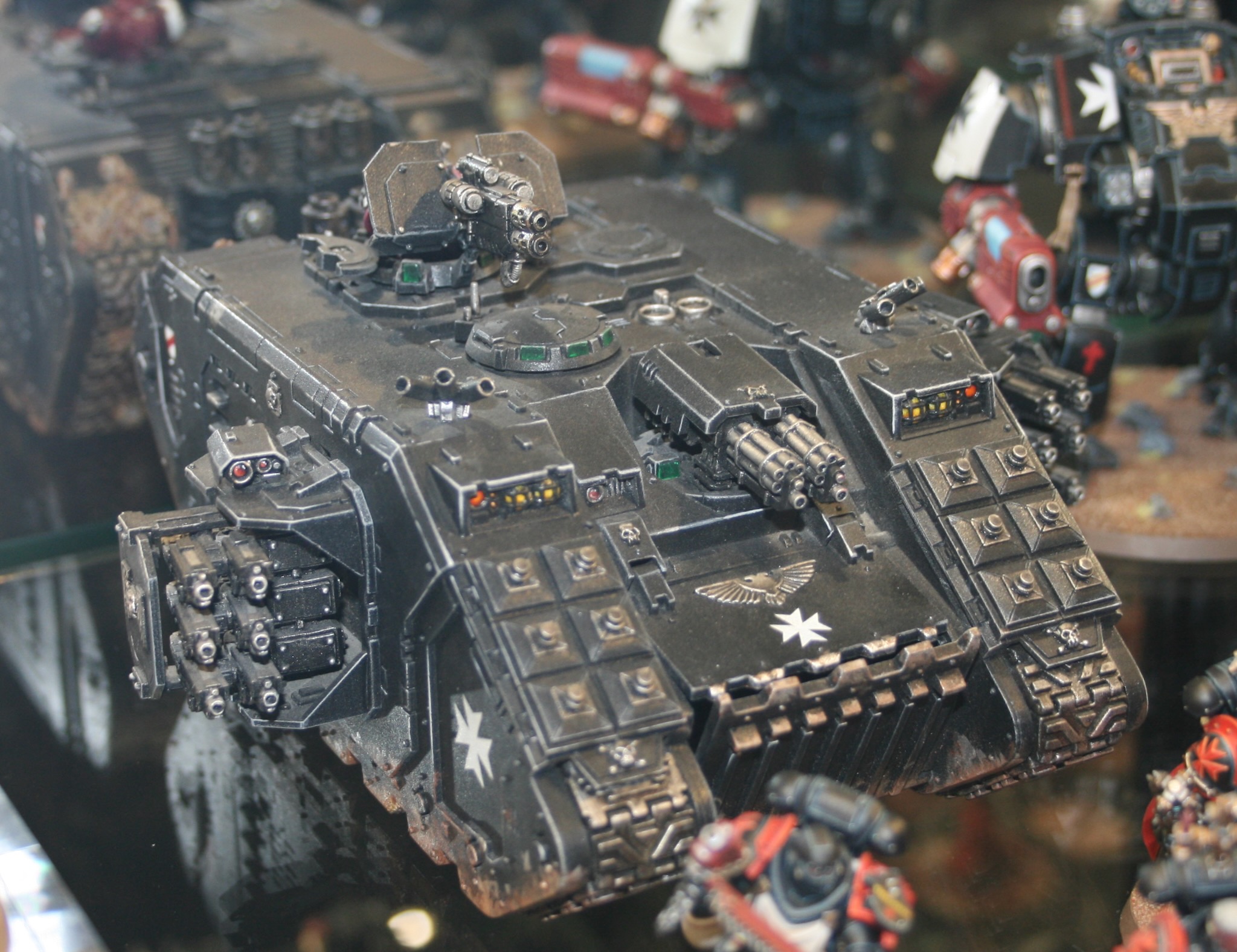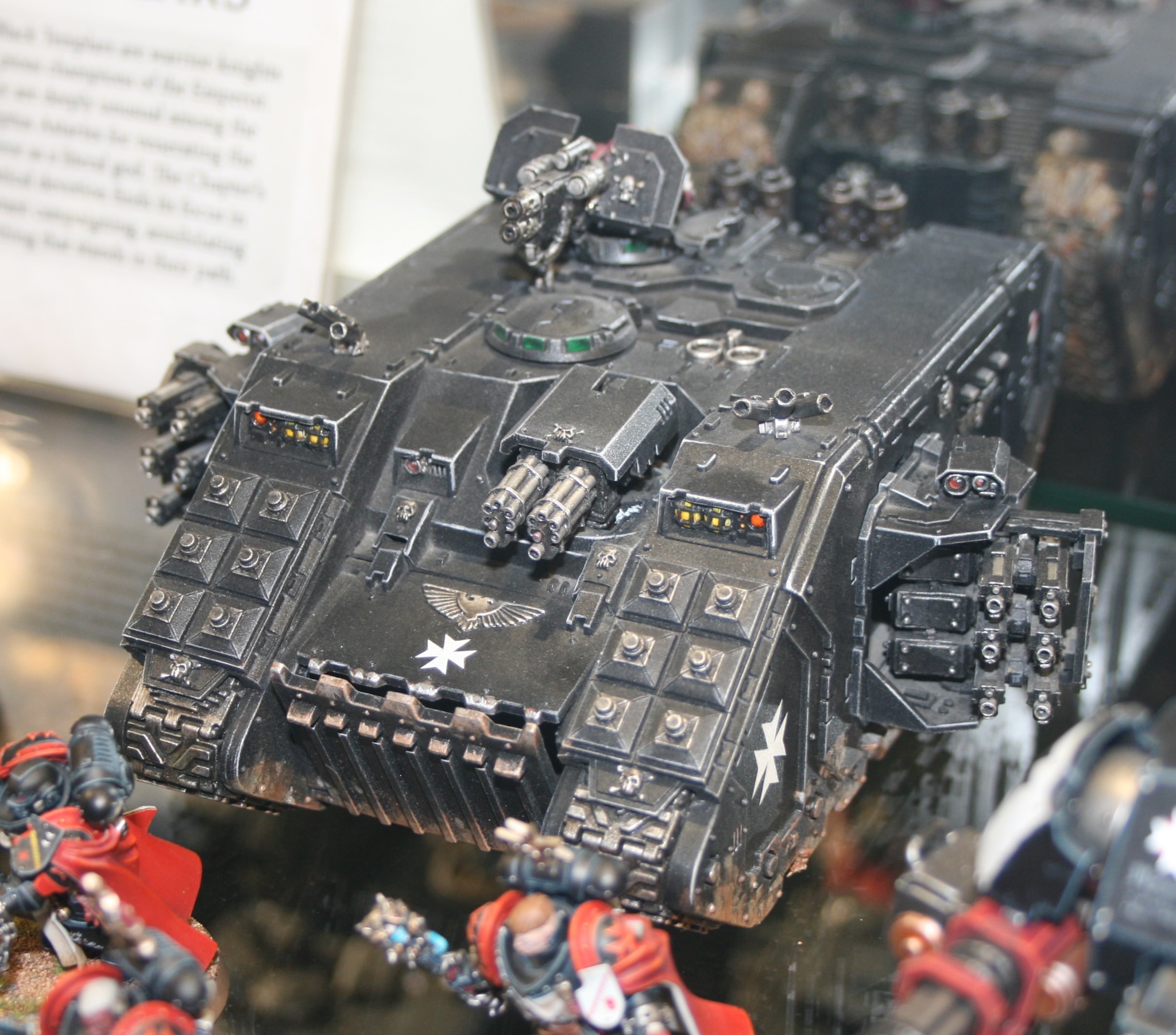 These Armoured Vehicles of the Black Templars were in the display cabinets at Warhammer World.