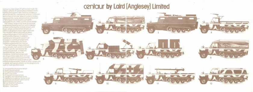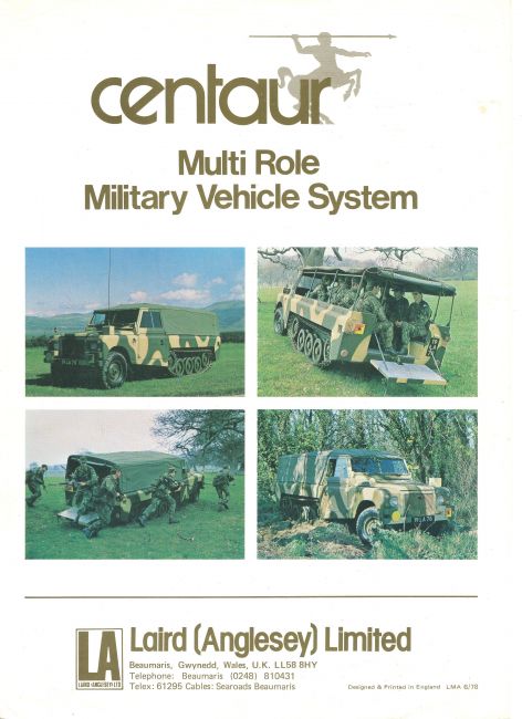 The Laird Centaur was the brainchild of Laird (Angelsey) Limited and was the result of intensive engineering development combining the Land Rover and the Alvis designed tracks of the FV101 Scorpion light tank.