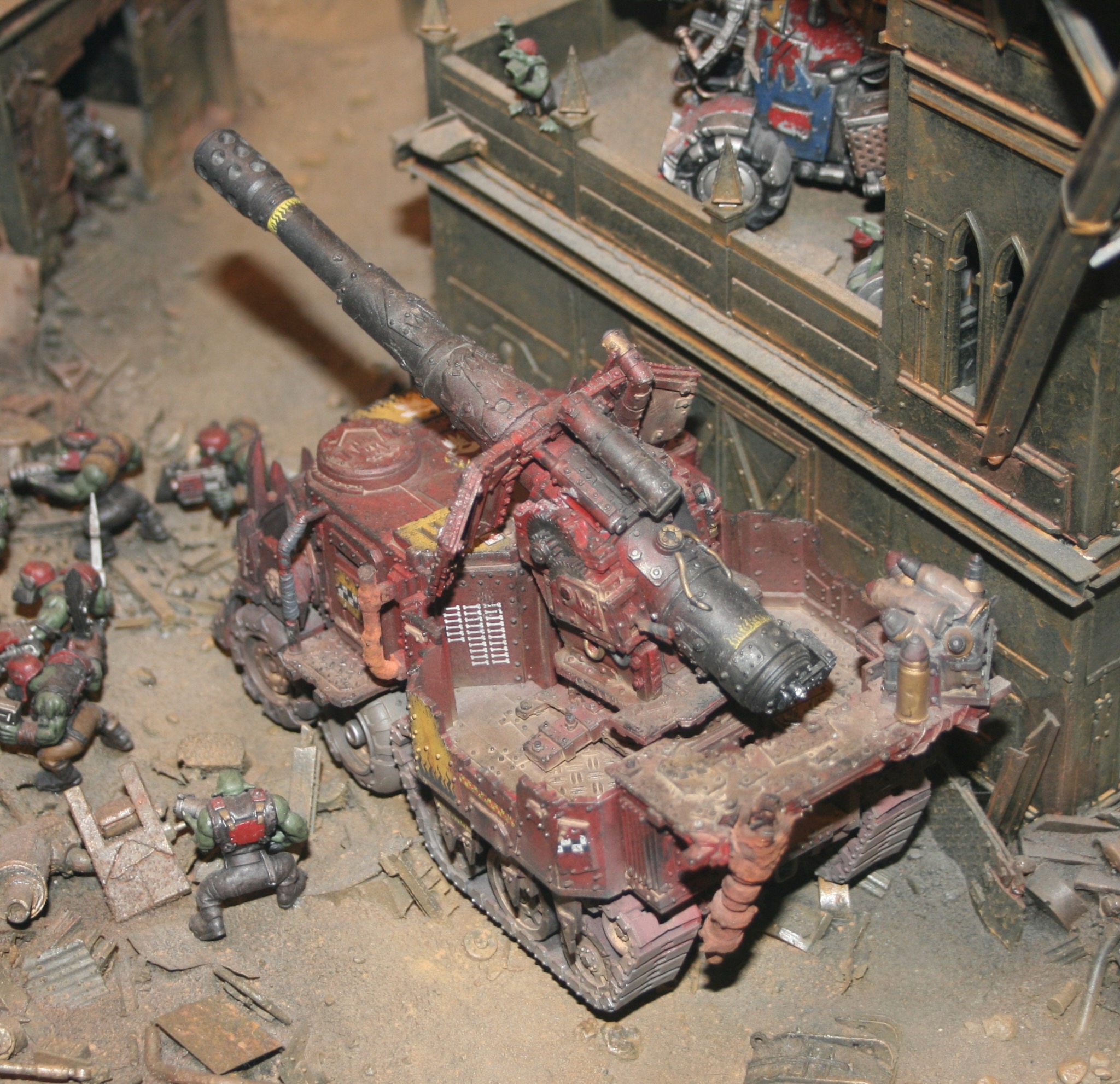 Ork Mega-Dread enters the fray. A smoke-belching, hydraulic monster able to tear apart enemy tanks and smash a side lesser war machines with contemptuous ease.