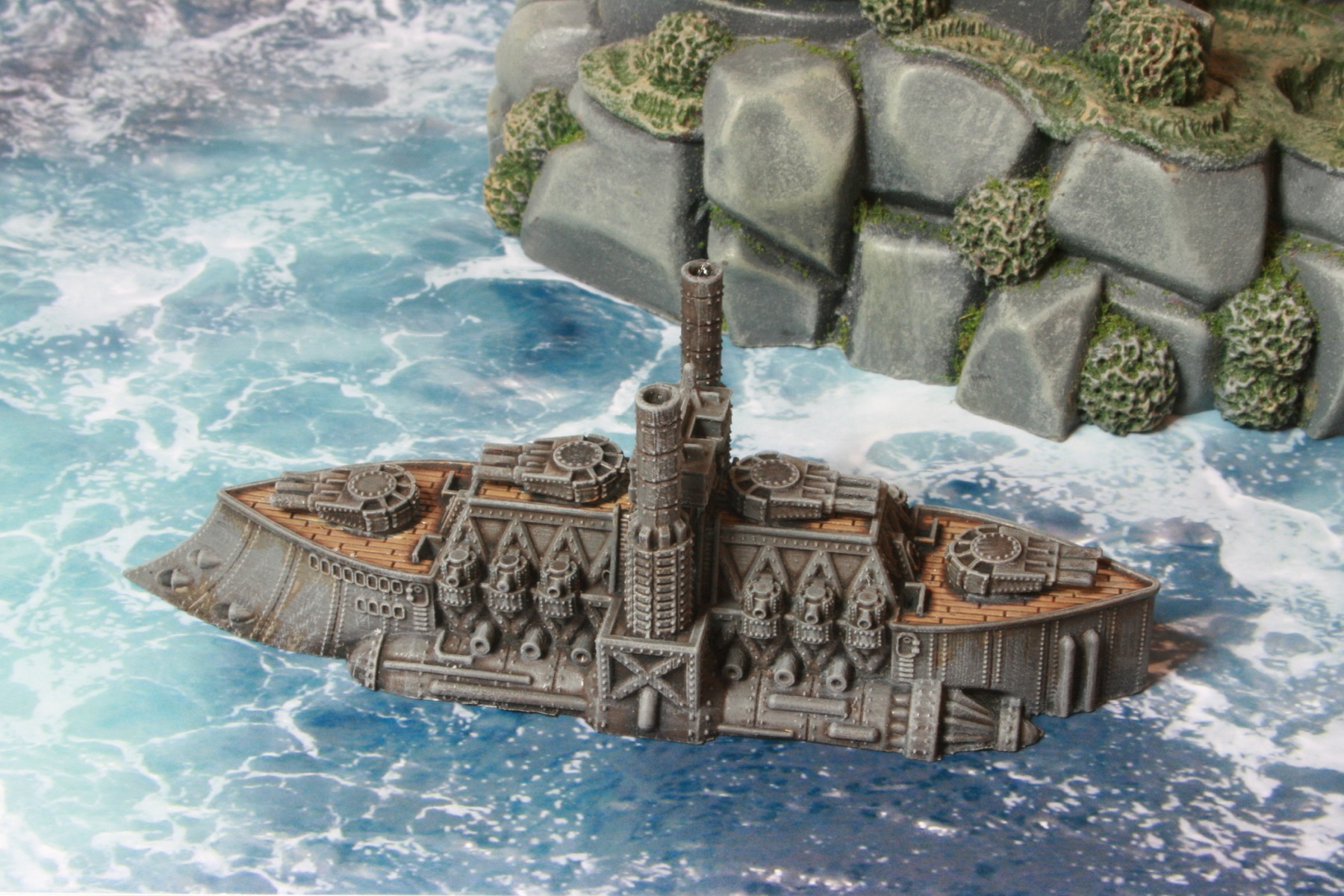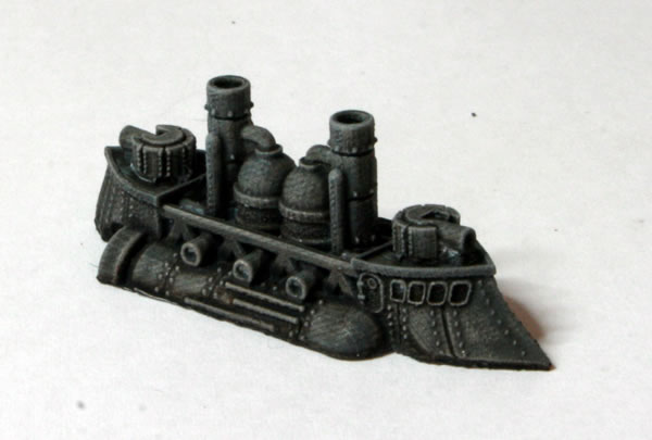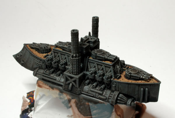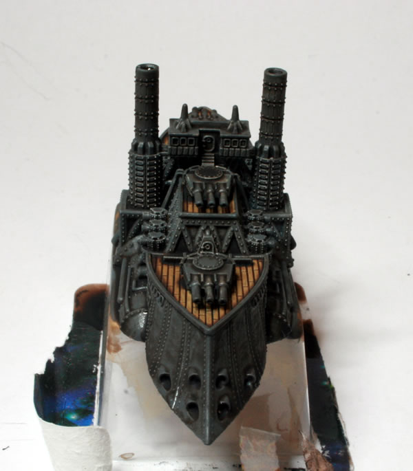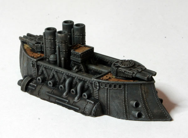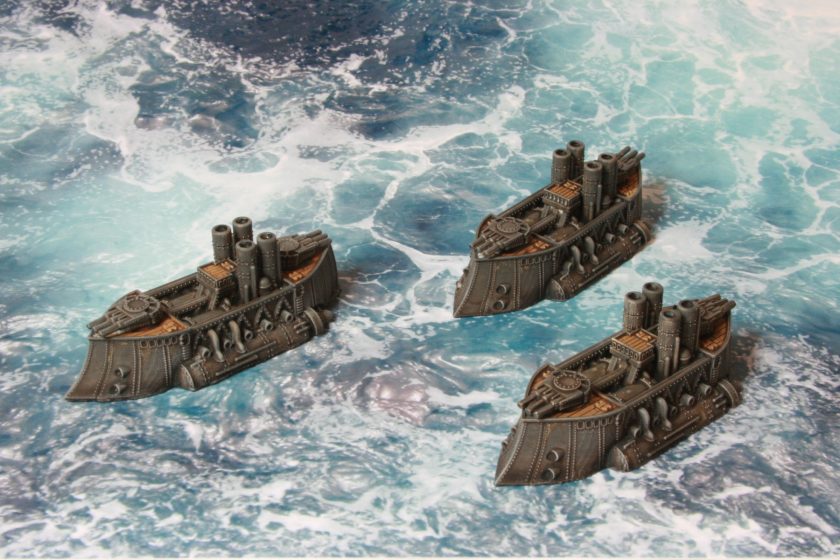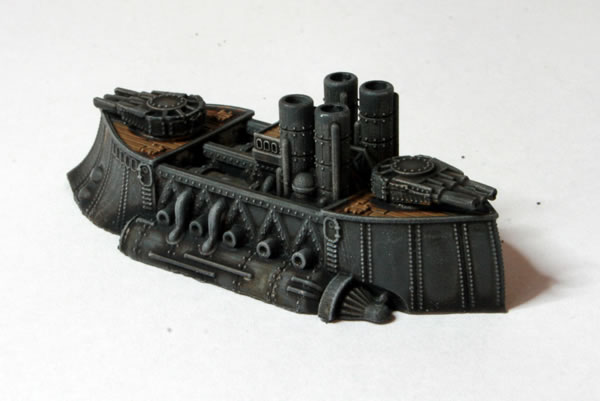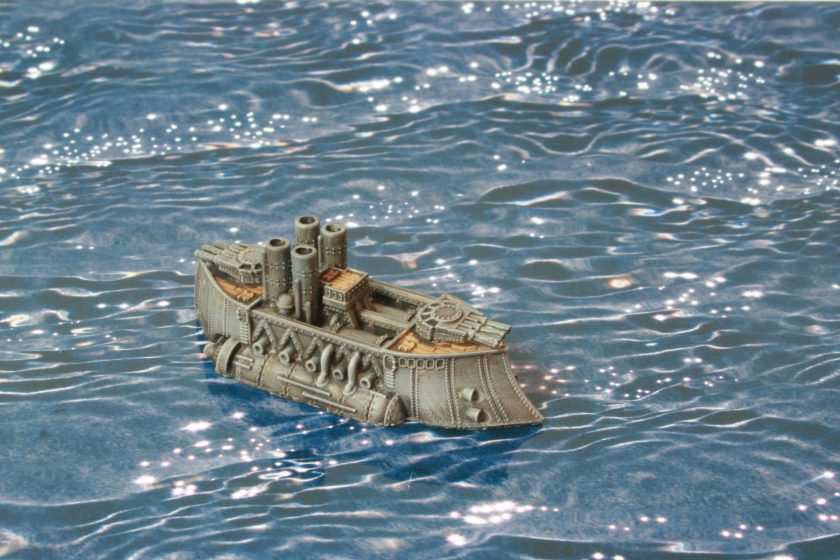 I did consider painting parts of the model bronze or copper, to add a victorian science fiction feel, but in the end kept the model mostly grey to be more naval looking. Another thing I have seen on other peoples’ models is making elements of the model a glowing “cobalt” blue colour. I might do that if I go down the route of painting a Covenant of Antarctica naval force.