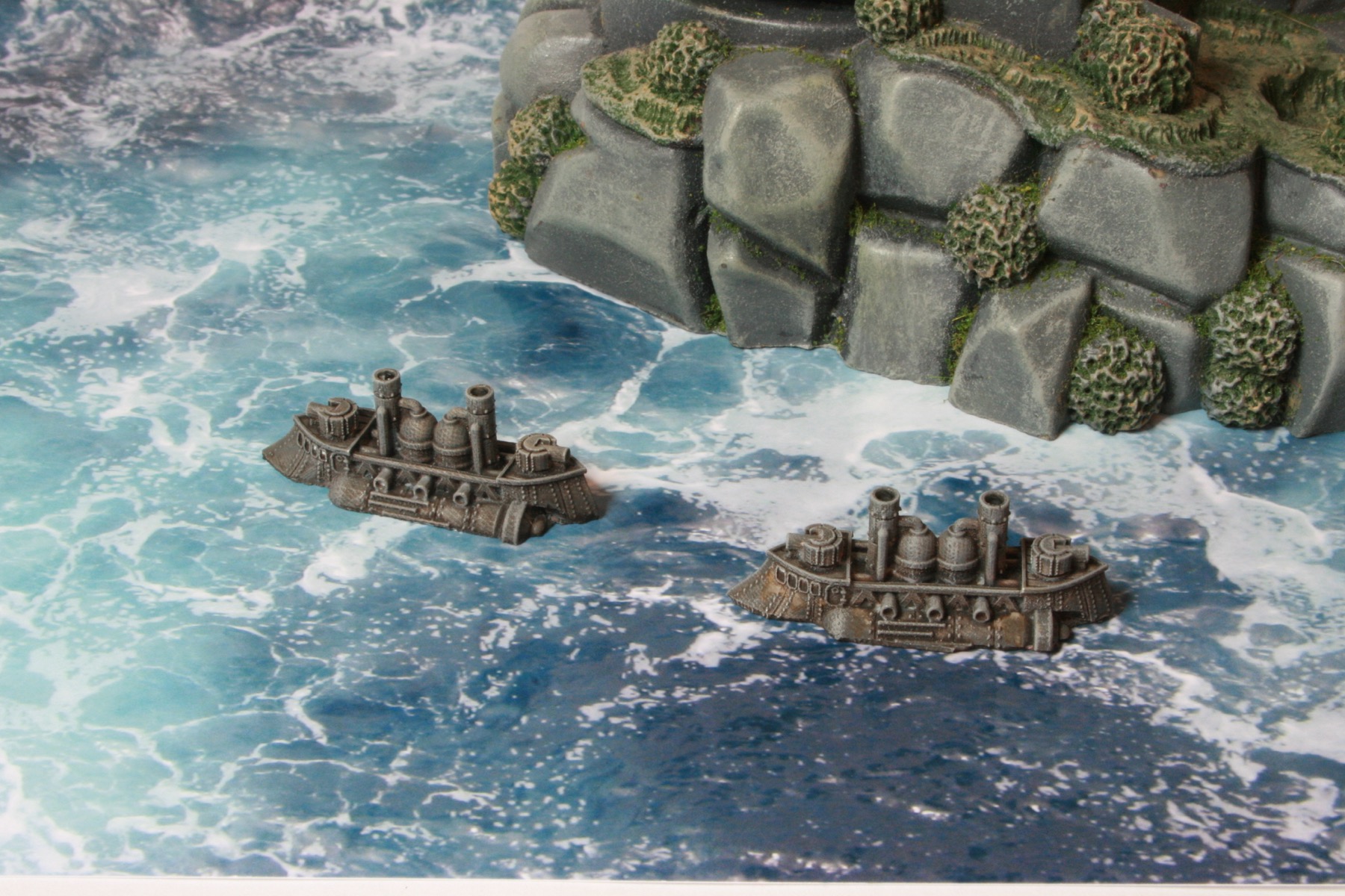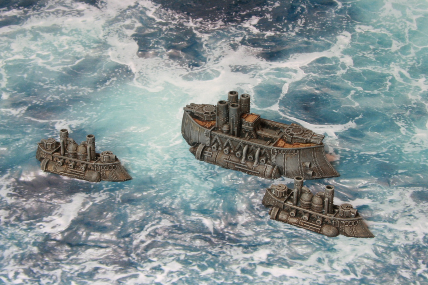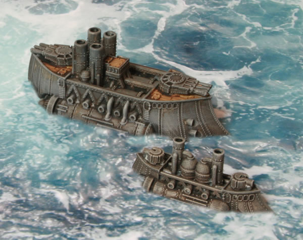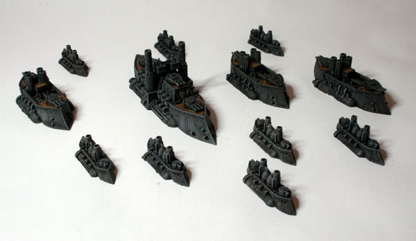 I did consider painting parts of the model bronze or copper, to add a victorian science fiction feel, but in the end kept the model mostly grey to be more naval looking. Another thing I have seen on other peoples’ models is making elements of the model a glowing “cobalt” blue colour. I might do that if I go down the route of painting a Covenant of Antarctica naval force.