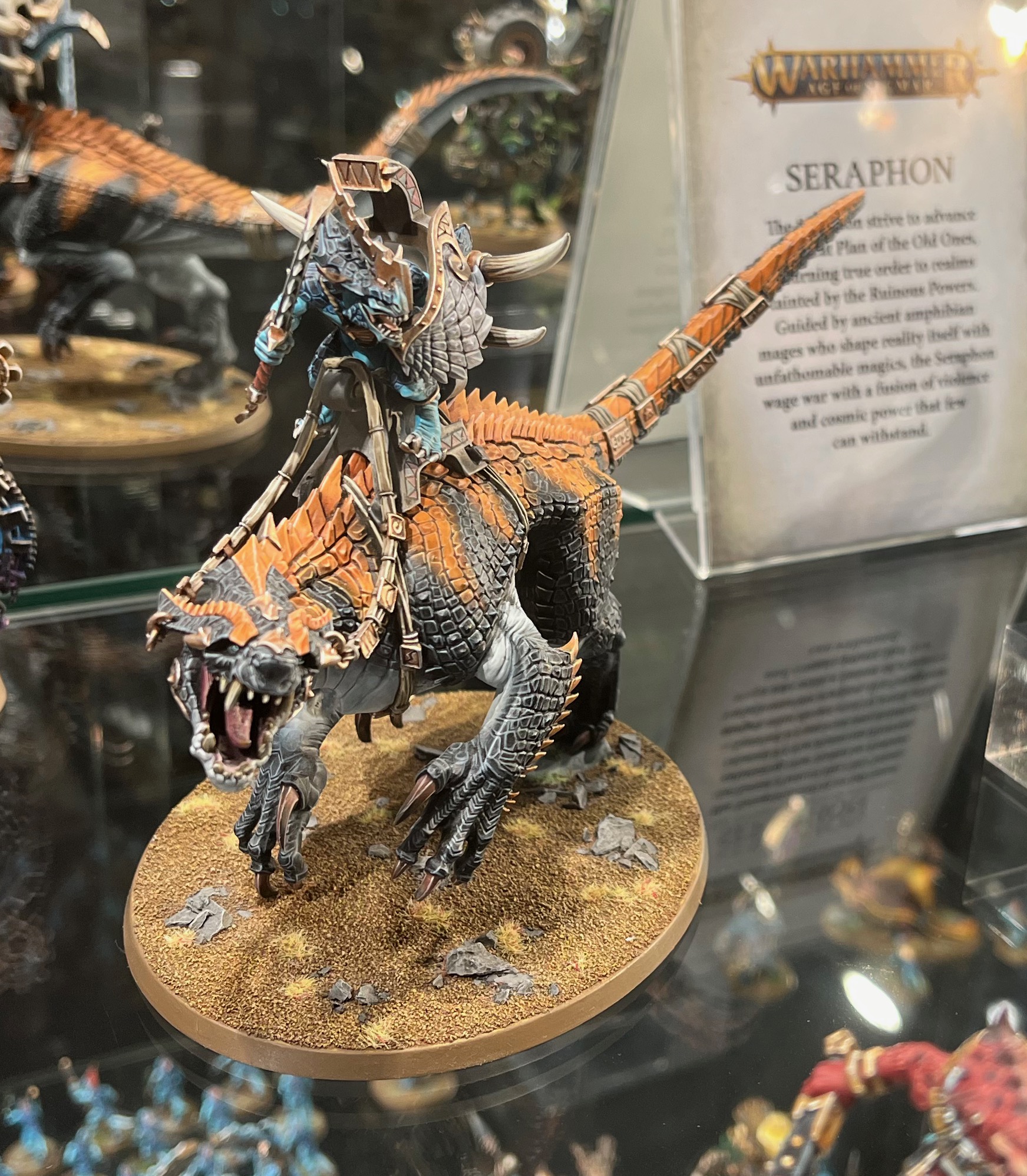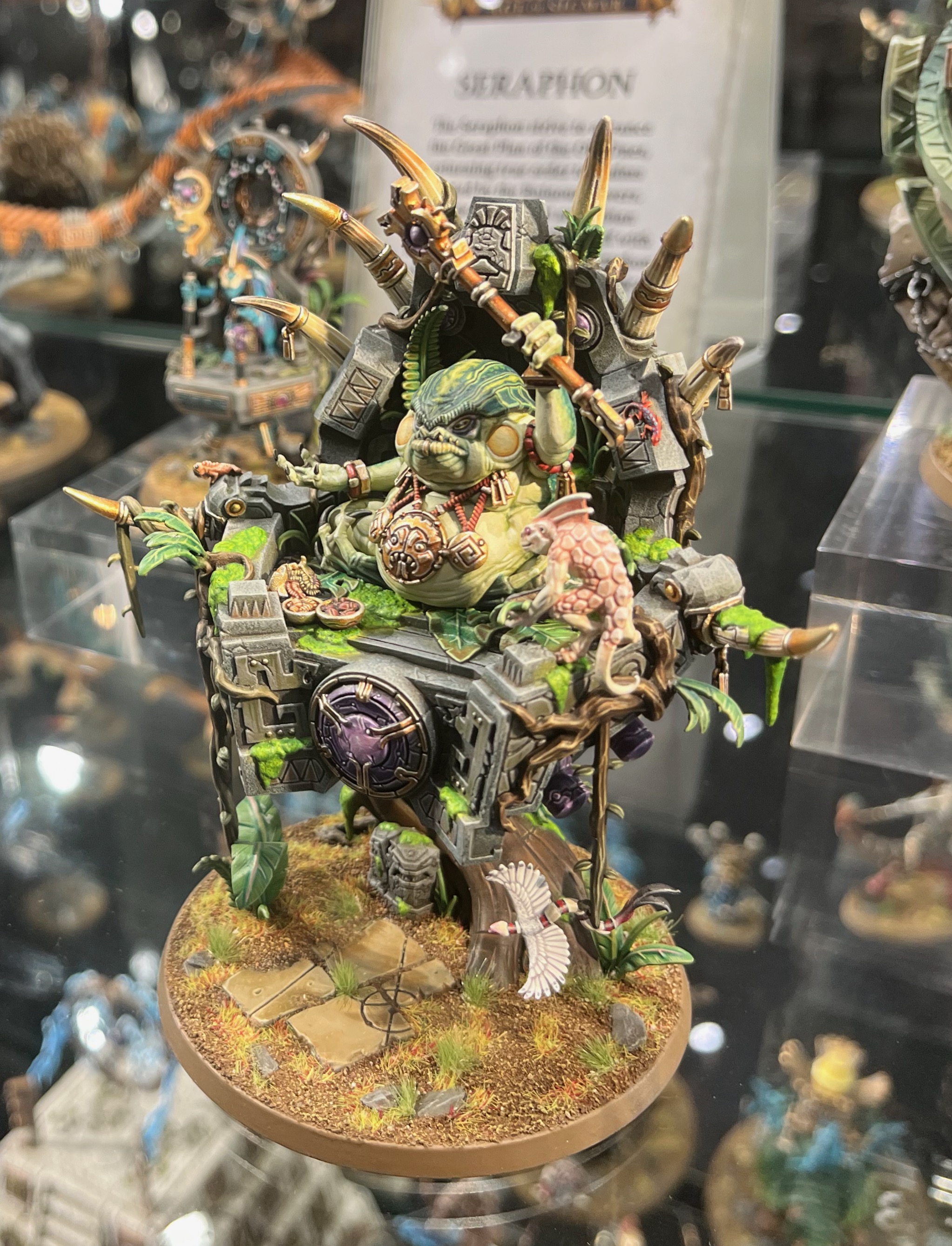 Another old post, from 2007, and another photograph from Warhammer World. A wonderful unit of Saurus Warriors with a Slann leading them. Part of the ‘Eavy Metal Lizardmen Army on display at Warhammer World.
