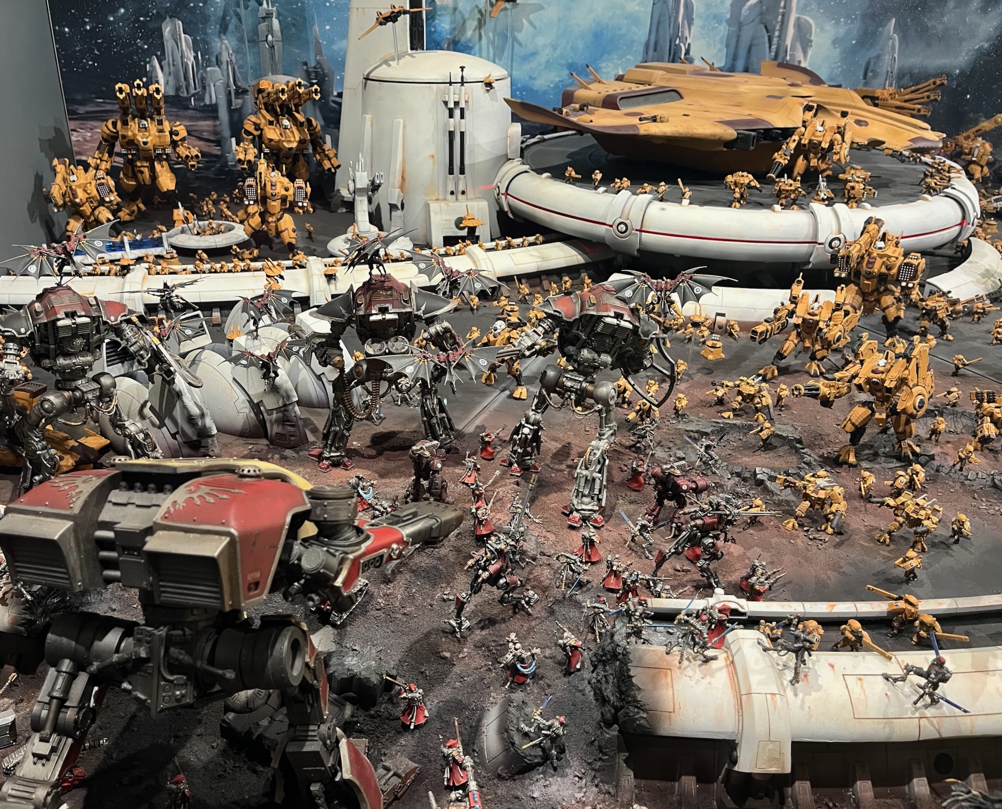 There was a huge display of Tau forces defending themselves against an attacking force of Imperial Knights and Titans. At the heart of the display is the huge Tau Manta.