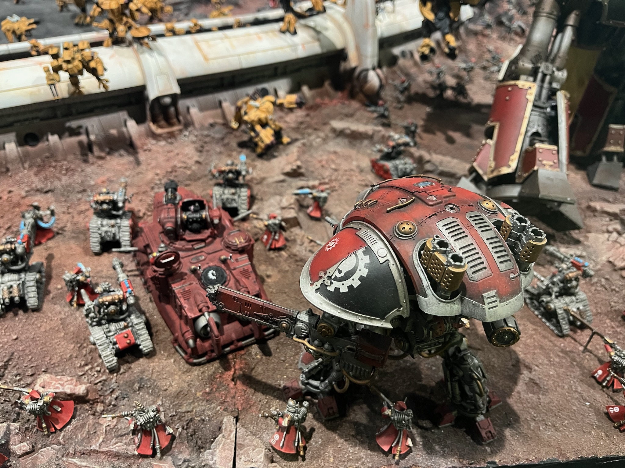 The legions of the Cult Mechanicus launch an assault on the resource-rich Tau colony world of Vesh’yo, intent on plundering it to feed the insatiable appetites of their Forge Worlds. The mighty Titans of Legio Atarus walk alongside the Knights of House Col Khak, bound to the Lords of Mars by oaths of fealty even older than the Imperium. But will this be enough to defeat the cutting-edge technology of the upstart xenos? Can even a Titan prevail against T’au Supremacy Armour?